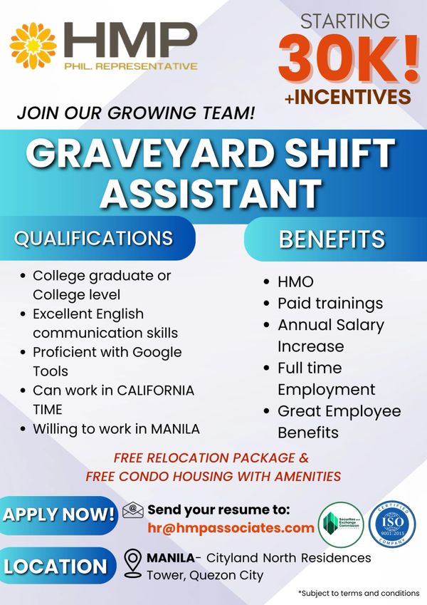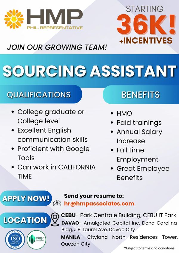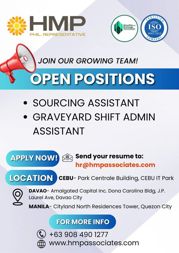 TEL: +632 8807 4189 / CEL: +63 908 490 1277 / EMAIL: HR@HMPassociates.com